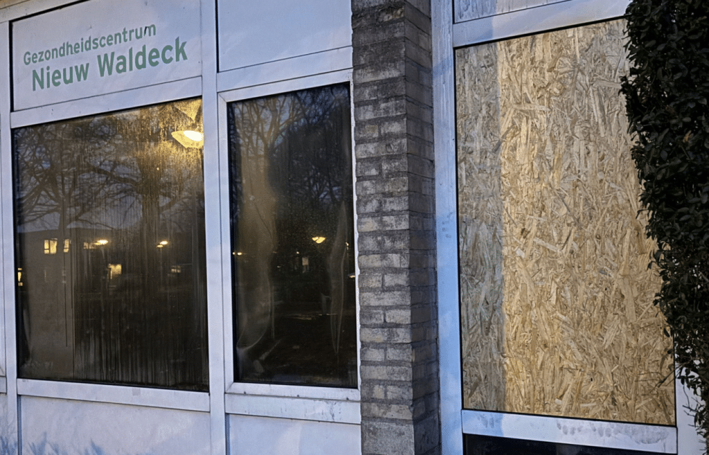 In de vroege ochtend van 1 januari jl. hebben vandalen getracht in te breken in ons gezondheidscentrum Nieuw Waldeck. Bij de tweede poging zijn zij erin geslaagd om het dubbele raam in de backoffice door te breken. Vervolgens hebben ze (zwaar) vuurwerk naar binnen gegooid. Er is hierdoor een grote brand ontstaan waarvoor de brandweer voor de zoveelste keer die nacht heeft moeten uitrukken. Ondanks alle inspanningen van brandweer en politie, die snel ter plaatse waren, is een van de twee vleugels van het pand volledig verwoest. De rest van het gebouw heeft rook- en waterschade opgelopen. Het is nog niet duidelijk hoelang de renovatiewerkzaamheden gaan duren, maar we vrezen dat dit gezien de aanzienlijke schade zeker maanden zal duren.